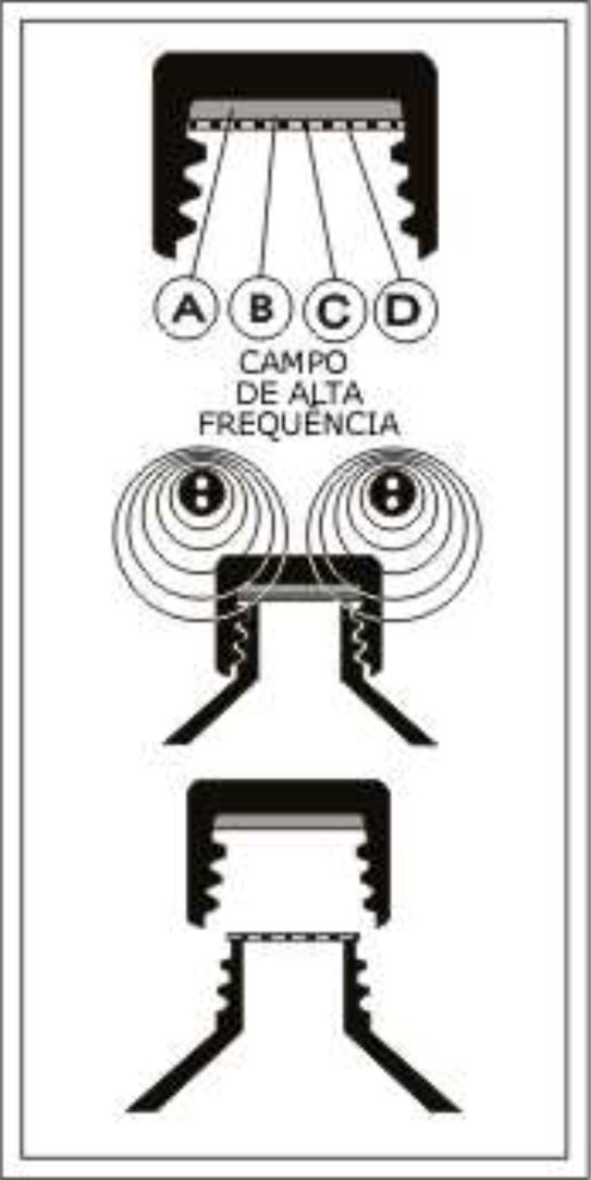 Após a colocação da tampa, o recipiente atravessa um campo de alta frequência.Este campo aquece a folha de alumínio que, por condução, derrete a camada de polímero a qual se funde com a boca do recipiente selando o mesmo hermeticamente.